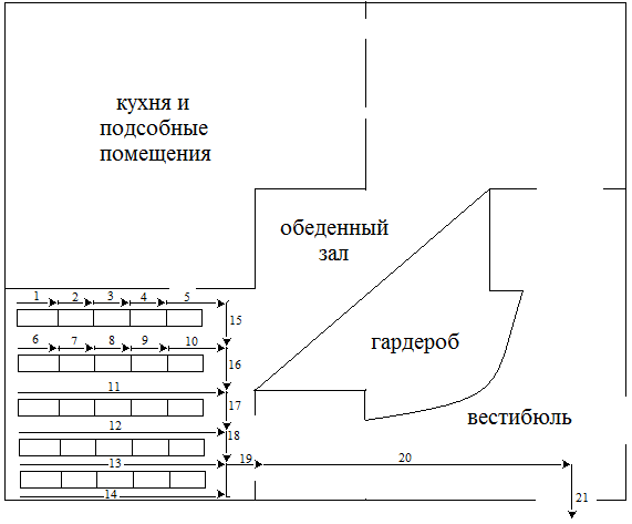 - Ширину выходов из обеденного зала выполнить равной 3 м;