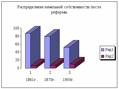 Если в 1861 г. в руках дворян находилось 87 млн. десятин земли, а к концу 70-х годов — 79 млн., то к началу XX в. — 52 млн. десятин, т. е. количество земли уменьшилось на 41%. В связи с этим удельный вес дворянского землевладения в составе всей частновладельческой земли за пореформенный период сократился с 80% до 50%, а крестьянского возрос с 5% до 20%.