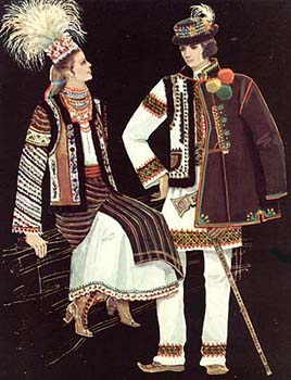 Парубоцький костюм. Довга тунiкоподiбна сорочка з доморобного полотна, шо одягалася поверх штанiв, пiдперезана широким шкiрним посом. Кептар та сердак оздобленi аплiкацiєю iз шкiри, сукна та вишивкою. Вузькi "холошнi" штани з бiлого полотна вишитi на холошах. Одяг був надзвичайно колоритним, багато прикрашався рiзноколiрною вишивкою, плетивом, аплiкацiями з шкiри, металевими пiстонами. Парубоцькi капелюхи були оздобленi квотами, рiзноколiрними стрiчками, пером та iн. Постоли "моршенi", "заклебученi", прив'язанi до ноги "волоками".