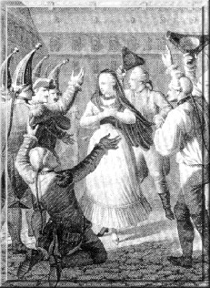 Миновал час, затем второй. Ближе к полуночи внезапно вошла камеристка и объявила, что молодой супруг ужинает со своими слугами. Лишь после долгого ожидания появился новобрачный, улегся на кровати рядом с молодой женой и сразу же забылся пьяным сном.