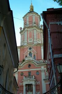 Но особенно удачной находкой зодчего были массивные волюты главного фасада эти своеобразные контрфорсы, выступающие из основного объема и подчеркивающие его мощь. Меншикова башня произведение более барочное, чем храмы "московского барокко". Ее зодчий стремится к усложнению форм, к их пластичности и многоплановости, отходя от плоскостной трактовки стены своих предшественников; одновременно он пытается смягчить переходы между ярусами, нивелируя тем самым ярусность построения башнеобразного храма и добиваясь слитности всех составляющих его объемов, пронизанных единым порывом в высоту.