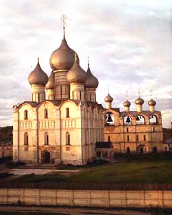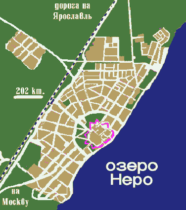 Если ехать от кремля вдоль озера на северо-восток, то на бывшей окраине города, ныне густонаселенный жилой район "КУБА", мы встретим Аврамиев монастырь. На юго-западе мы попадем в Яковлевский монастырь, со своеобразной архитектурой. Кстати, рядом с ним, у озера расположен один из трех пляжей города. Наконец, если поедем на северо-запад, то упремся в железную дорогу с вокзалом и автостанцией. Собственно старый город располагается в центральной части, вокруг кремля и ограничивается Окружной улицей. В настоящее время часть кремля отреставрирована и поддерживается в приличном состоянии. Если уж Вам доведется побывать в Ростове, то не забудьте посетить многочисленные музеи и экспозиции, расположенные на территории кремля, останется масса приятных воспоминаний. А если будете в Ростове летом, то ни в коем случае не упустите возможность поплавать по озеру на лодке или пароходе. С воды открывается прекрасная панорама на весь город, купола кремля и монастырей потрясают своим великолепием. Глядя на все это, так и хочется, подобно Ивану Грозному - герою Юрия Яковлева из фильма "Иван Васильевич меняет профессию" - воскликнуть: "Красота-то какая! ЛЕПОТА!!!" Кстати, съемки этого фильма, той его части, где опричники гонялись за "демонами", проходили именно в Ростове Великом, на территории кремля.