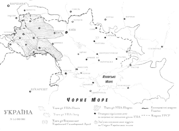 * - Карту подано за: Ле6едь М. Українська Повстанська армія.- Вид. Пресового бюра УГВР: Мюнхен, 1946.