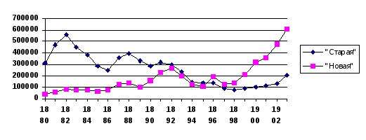 График 2. «Старая» и «новая» иммиграция (1880-1903).*