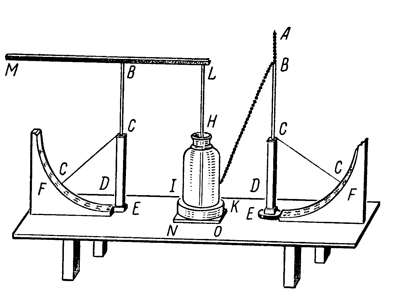 Очень важным шагом в развитии учения об электричестве было изобретение лейденской банки, т. е. электрического конденсатора.
