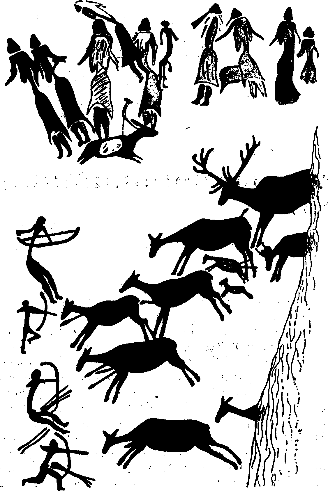 Сцена охоты. Наскальный. рисунок. Мезолит.