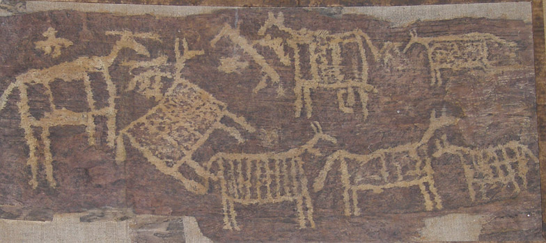 Древнему населению Южной Сибири в эпоху бронзы было известно несколько способов исполнения изображений: гравировка, выбивка. Именно этими приемами выполнены излюбленные образы: быки, антропоморфные изображения, солнцеголовые и быкоголовые существа, рожающие женщины, фантастические хищники и солярные символы. Многолетние усилия ученых позволили вплотную подойти к пониманию «языка» этих изображений, в которых заключены представления о бесконечном круговороте времени, в ходе которого происходит извечная борьба добра и зла, тьмы и света. Одним из центральных звеньев этой древней космогонической системы был мотив преследования солнца фантастическим хищником. Каменные стелы развитого бронзового века воплощали представления о неизменном возобновлении жизни, а на рубеже бронзового и железного веков были связаны с культом предков.