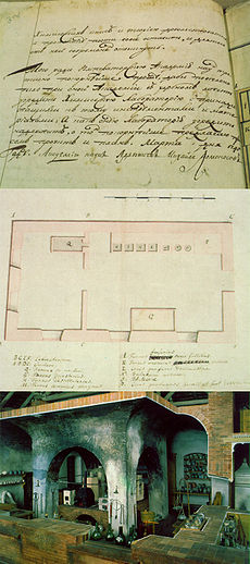Прошення М. В. Ломоносова по всановленню хімічної лабораторії, його план цієї лаборатории та її макет. Музей М. В. Ломоносова. Санкт-Петербург