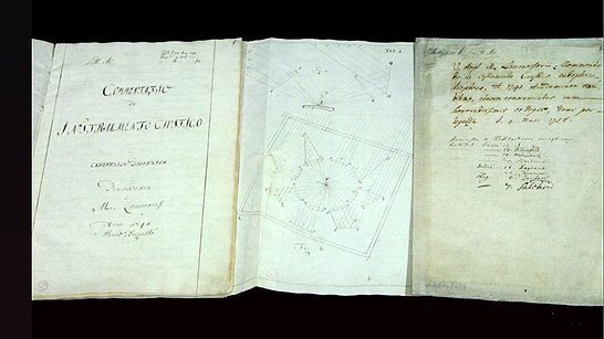 Рисунки М.В. Ломоносова із рукописів: катоптрико-діоптричний запалювальний інструмент і однозеркальний телескоп. 1762
