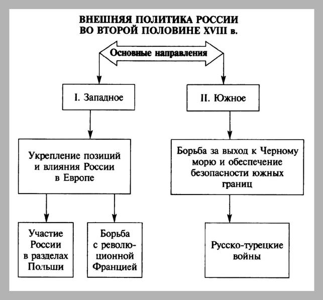 Важнейшими задачами внешней политики России во второй половине XVIII в. стала борьба за выход к Черному морю и включение западных земель Украины и Белоруссии в состав России.