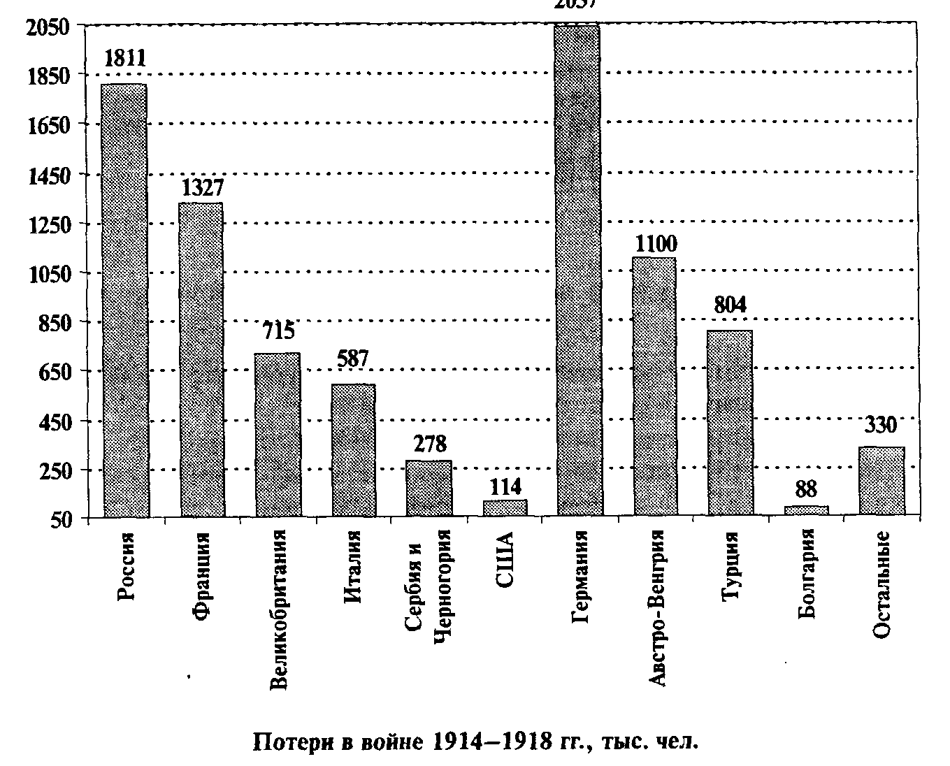Дело не только и не столько в человеческих жертвах Великой войны, дело не в огромных материальных и финансовых потерях. Хотя эти потери многократно превысили осторожные подсчеты довоенных теоретиков, называть их «неисчислимыми» или «превосходящими человеческое воображение» неоправданно. В абсолютных цифрах людские потери были меньше, нежели от эпидемии гриппа 1918 - 1919 гг., а материальные - уступали последствиям кризиса 1929 г. Что же касается относительных цифр, то Первая Мировая Война не выдерживает никакого сравнения со средневековыми чумными эпидемиями. Тем не менее, именно вооруженный конфликт 1914 г. воспринимается нами (и воспринимался современниками) как страшная, непоправимая катастрофа, приведшая к психологическому надлому всю европейскую цивилизацию.