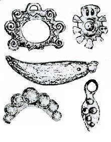Женский костюм дополняли съемные украшения из бисера, блесток, раковин, пронизок и монет. Глубоко традиционны и длительное время бытовали ушные подвески, серьги , нередко в сочетании с шейным украшением, нагрудные застежки — сюльгамы, накосники, браслеты, кольца и перстни, поясные подвески и др. Получили распространение заимствованные виды от тюркских соседок: головное, массивный нагрудник, чересплечное и др.