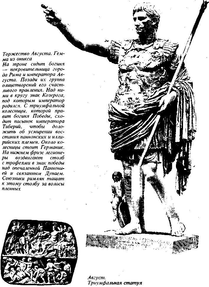 Таким образом, к концу своего длительного 44- летнего правления путем целенаправленных и многочисленных реформ Августу и стоящим за ним кругам господствующего класса удалось решить многие больные вопросы и проблемы римского общества и государства, которые столь остро проявились во время гражданских войн. Были заложены прочные основы рождающейся Римской империи как нового типа античной государственности и имперского рабовладельческого общества, новой средиземноморской культуры2.