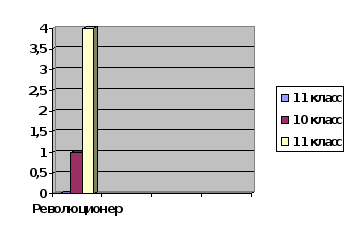 Имя известного историка В.О.Ключевского десятиклассникам также известно. Но крайне интересный момент заключается в том, что 5 % человек предположило революционные наклонности в личности историка, и только 65 % оправдали наши ожидания. Позиция же 30 % респондентов говорит о восприятии всех деятелей литературы XIX века как философов.