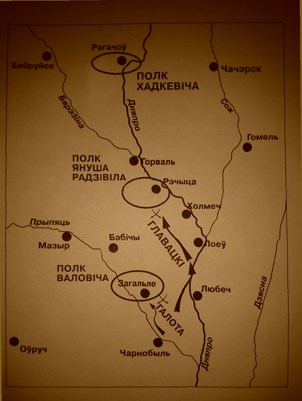 f) Наступления полковника Кричевского на стан Радзивилла