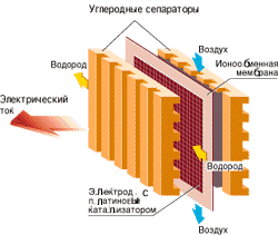 - В конце семидесятых начали всерьез задумываться об экологически безопасных автомобилях - возникла идея перевести машины на электротягу. Нужны были аккумуляторные батареи, но оказалось, что мир не может создать аккумуляторы, которые могли бы иметь достаточно высокую удельную энергоемкость. А чтобы зарядить батареи, в отличие от наполнения бака бензином, необходимо несколько часов. Тогда бы приходилось заряжаться ночью, но если все бы стали заряжаться ночью, не хватило бы электростанций. Проблем была масс, и энтузиазм начал постепенно угасать. И только в девяностых годах эта идея возродилась и началась работа по топливным батареям. Теперь уже задача стояла научиться вырабатывать электричество из уже известных видов топлива.