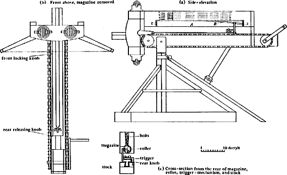 Следующим шагом был переход от стрельбы стрелами по настильной траектории к метанию камней по облической или, если угодно, баллистической траектории. По этой причине такие машины принято называть баллистами, хотя в некоторых книгах подпись "баллиста" можно встретить и под стрелометом. Нет в научном мире порядка, нет стандартов и совершенства...