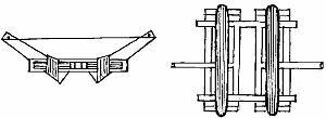 В это же время возникает жесткое разделение торсионных метательных машин на палинтоны (palintonon, греч. камнемет) и эвтитоны (euthytonon, греч.стреломет). По этой классификации машина, изображенная вверху страницы, является палинтоном, а скорпион – эвтитоном (Рис.6). Заметим, что обе эти машины двухплечевые, то есть используют два рычага и два блока упругих элементов.