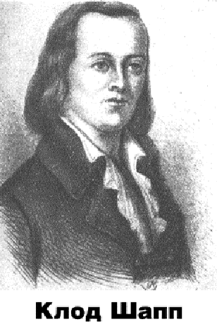 В июне 1789 г. в Париж приехал некий священник Клод Шапп. Через несколько дней у заставы Этуаль он продемонстрировал свой телеграф, который был им назван “семафором”. Передача на 15 км была произведена удачно. Но Парижу тех дней, кануна великого взрыва французской буржуазной революции, было не до изобретателя и его телеграфа: первые опыты прошли совершенно бесследно, а принадлежности телеграфа были украдены.