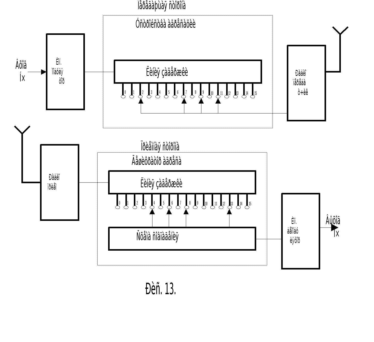 На приемной стороне после усиления и преобразования в индивидуальном радиоприемном устройстве сигналы поступают в устройство дешифрации адреса. Дешифрация адреса заключается в определении взаимного расположения импульсов адреса и осуществляется так же с помощью ЛЗ с отводами.
