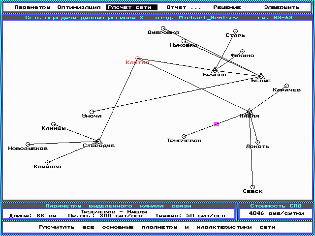 критерий оптимизации: общая стоимость сети;