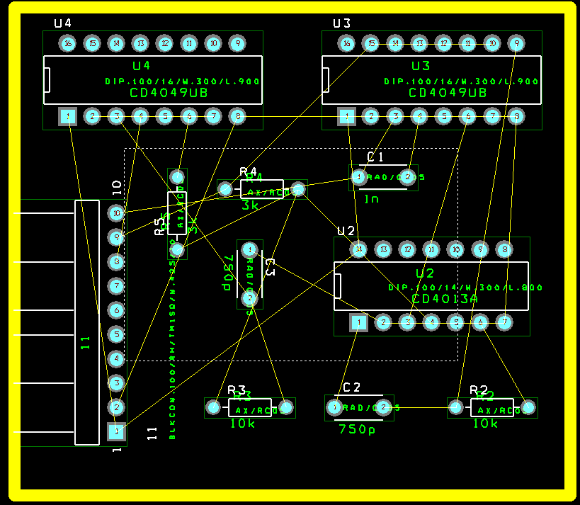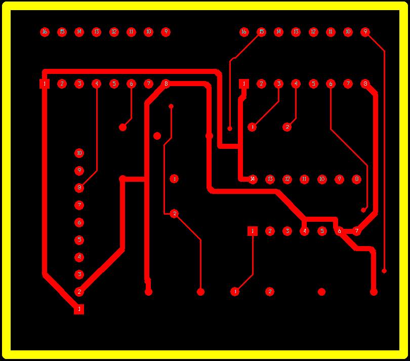 Автотрассировка проводников производится по команде Auto/ Autoroute / Board. После окончания разводки плата увеличивается на весь экран по команде View / Zoom All, и визуально оцениваются результаты трассировки. Если видно, что некоторые элементы расставлены неоптимальным образом, (например, их желательно переместить, повернуть и т.п.), можно отменить результаты трассировки (команда Auto / Unroute / Board) и переместить элементы вручную.