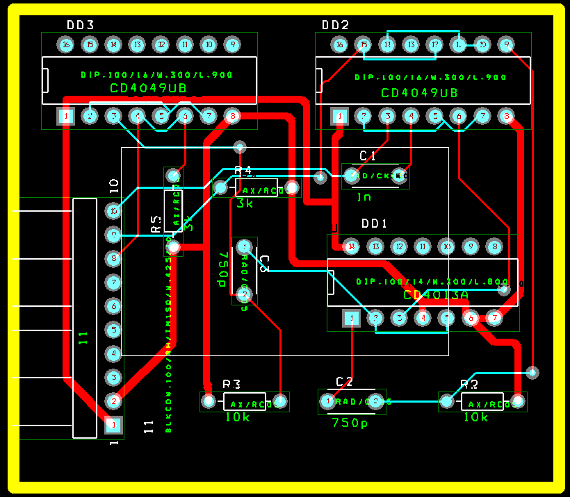 Рис. 6 – Окончательный вид платы после трассировки