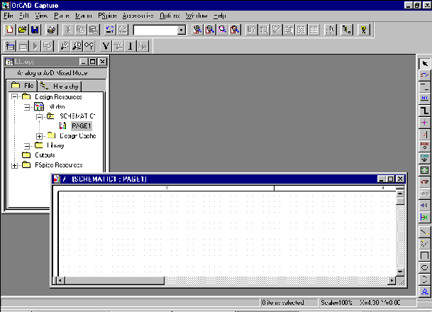 Электрическая схема разрабатывается в редакторе Capture являющимся компонентом пакета OrCAD. С помощью службы ICA имеется доступ к базе данных, содержащей сведения о 200 тыс. компонентов различных фирм. Программа PSpice A/D применяется для моделирования цифровых, аналоговых и цифро-аналоговых схем, описанных в формате PSpice. Разработка печатных плат производится с помощью встроенной программы Layout. В САПР OrCAD может быть создано четыре вида исходных представлений проектов: