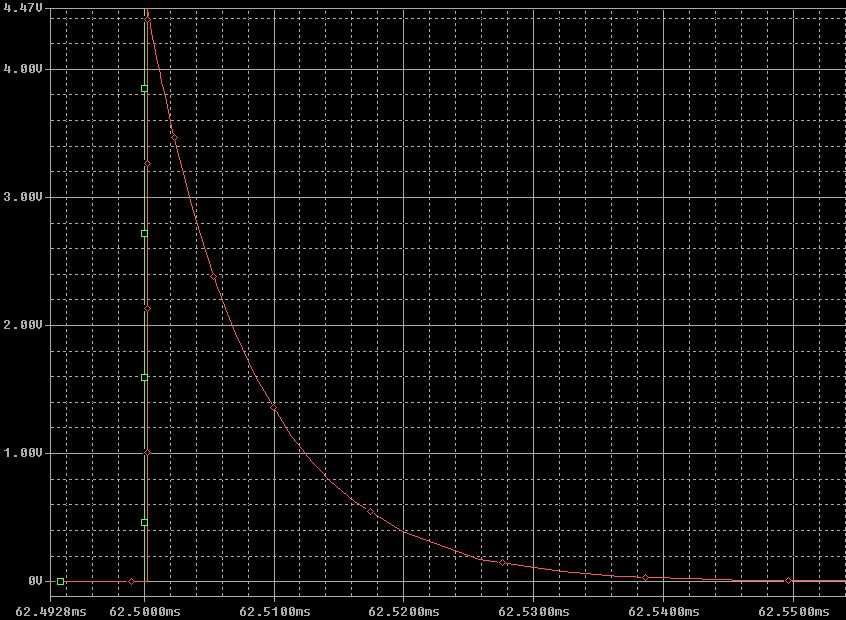 На рисунке 6 снизу виден один из коротких выходных импульсов. Установив маркеры на фронт и спад импульса можно измерить его длину. В окне Probe Cursor можно увидеть расстояние между этими двумя маркерами – dif = 12,15 мкс.