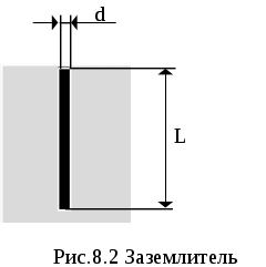 В начале определим сопротивление одиночного вертикального электрода. Предполагается использовать заземлитель стержневой круглого сечения или уголковый у поверхности земли (рис.8.2).