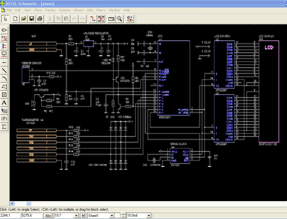 Основой устройства является микроконтроллер AT89C2051 фирмы «Atmel». Для отображения информации используется жидкокристаллический индикатор типа ЖКИ13-8/7-02. Несмотря на то, что в настоящее время доступны ЖКИ с встроенными контроллерами, иногда оказывается целесообразным применение специального ЖКИ. Причин может быть несколько. Распространенные ЖКИ со встроенными контроллерами обладают целым рядом недостатков: отсутствие десятичных точек, плохой угол обзора, недостаточный в некоторых случаях размер символов. В то же время существует доступная и довольно удобная в использовании микросхема драйвера ЖКИ КР1820ВГ1. Она выпускается Минским ПО «Интеграл».