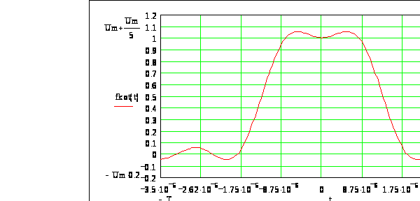 Сигнал построен не точно, в результате того, что точность системы MathCad ограничена (увеличение точности ведет к неприемлемо большому увеличению времени обработки) .
