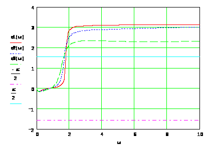 При использовании критерия Найквиста вначале получено выражение для передаточной функции разомкнутой системы, выполнена замена переменных и в блоке решения определено при каком условии годограф Найквиста проходит через критическую точку (-1, j0). Это условие отвечает критическому значению коэффициента усиления. В заключении построены графики годографов Найквиста для различных значений коэффициентов усиления и видно, что для k=3.134 график проходит через критическую точку на вещественной оси (-1, j0). Соответствующий документ MathCAD приведен ниже.