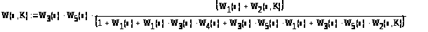 4. Далее в структурной схеме по правилам сложения передаточных звеньев, сложим параллельно соединенные звенья W2 и W1, а также последовательно соединенные передаточные звенья W3 и W1(1/W3+W4). Преобразованная схема имеет вид, изображенный на Рис.6