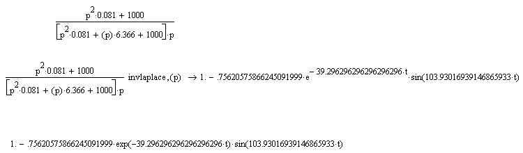 Перейдем к оригиналу, применим вторую теорему разложения. Подставляя значения корней характеристического уравнения находим преобразование Лапласа для переходной характеристики.