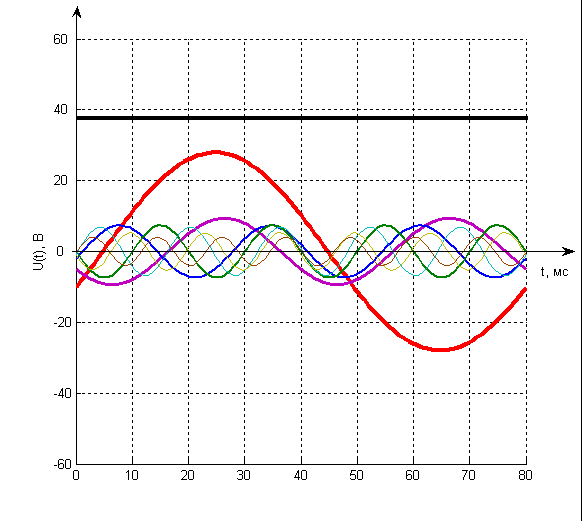 5. Вычислить и построить график выходного напряжения фильтра при полученном в пункте 2 периодическом входном сигнале.