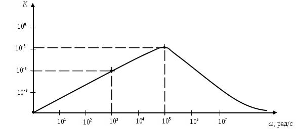 Таким образом, коэффициент передачи по аналогии с (3.41) для частоты ω = 103 рад/с равен