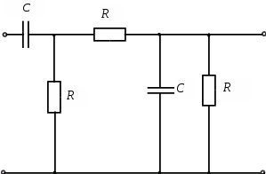 В первом случае как следует из формулы реактивного сопротивления емкости, реактивное сопротивление С>1> будет стремиться к бесконечности, а следовательно, общий ток цепи, а соответственно и напряжение на выходе схемы (на сопротивлении R>3>), будет равен нулю. Это означает, что коэффициент передачи цепи при в этом случае равен нулю.