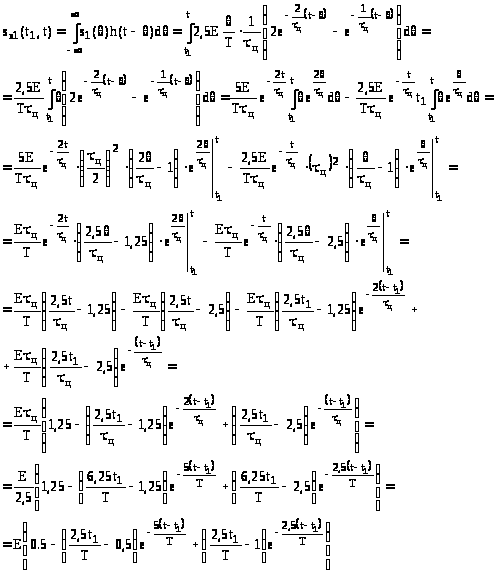 Рассчитываем отклик на выходе методом временного интегрирования, используя интеграл Дюамеля: