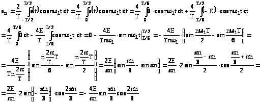 В разложении сигнала в ряд Фурье будут присутствовать только косинусоидальные гармонические составляющие, т.е.: