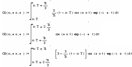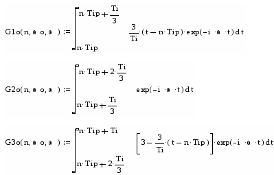 и преобразованием Фурье для получения спектральных функций, которые с учётом пределов интегрирования для n-го импульса будут рассчитываться по формулам: