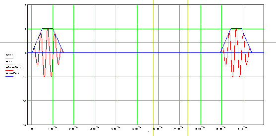 На вход звена формирования радиоимпульса с заданной огибающей (см. рис.9), подаётся сигнал огибающей радиосигнала (в нашем случае трапеция).