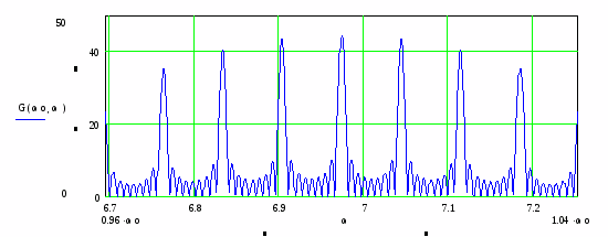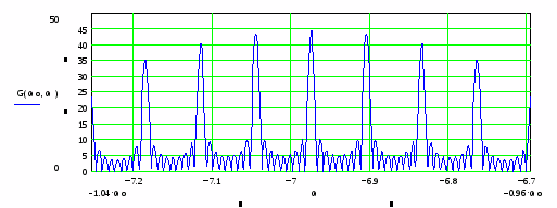 Рис. 8. Спектральная плотность пачки радиоимпульсов.