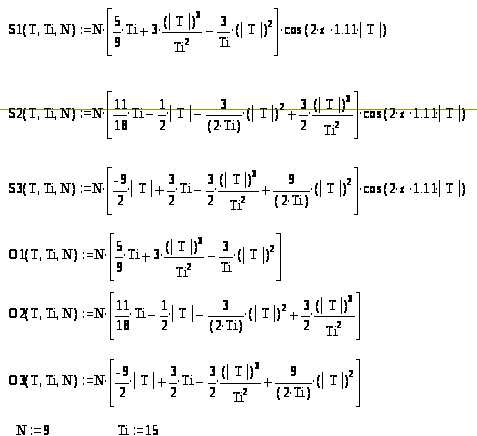 Для расчёта спектральной плотности воспользуемся, как и при расчётах АКФ, функциями огибающей радиосигнала (смотрите рис.2), которые имеют вид: