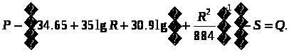 Теперь, исходя из выходной мощности передатчика P (дБ), запаса по замираниям S (дБ) и требуемого уровня сигнала на входе приемника Q (дБ) (), запишем уравнение для нахождения R - максимального расстояния от БС, на котором достигается требуемое качество связи: