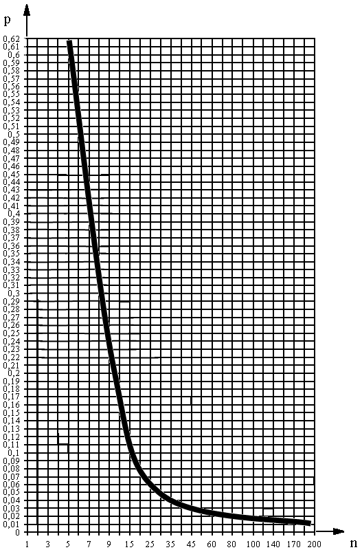 Тогда зависимость вероятности отказа от количества каналов будет представлена на рис.8.