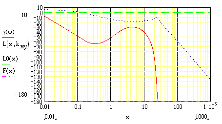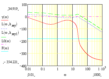 На рис.5 представлены графики л.а.ч.х для двух значений коэффициента передачи магнитного усилителя k>му> = 10 и k>му> = 80.