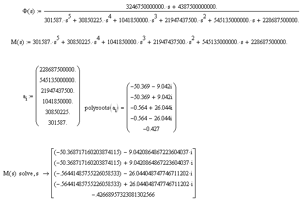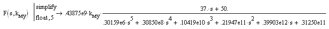 На практике важно уметь определять влияние параметров элементов электротехнической системы на ее устойчивость. Можно изменить общий коэффициент усиления системы и она из неустойчивой станет устойчивой. Например, определим влияние коэффициента усиления электромашинного усилителя на устойчивость системы. Для этого передаточную функцию замкнутой системы и ее характеристический полином запишем запищим в символьно-цифровом виде относительно параметра kму.