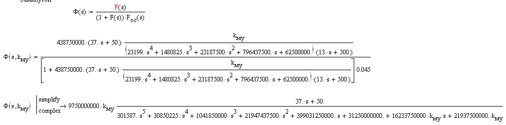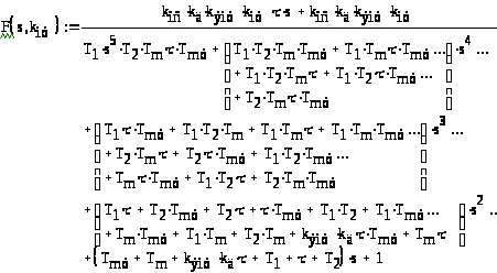 Запишем ее в символьно-цифровом виде для заданных параметров всех элементов системы, кроме коэффициента передачи магнитного усилителя: