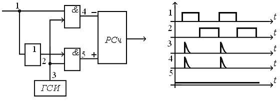 Рис.12. Схема и временные диаграммы функционирования цифрового фазового дискриминатора релейного типа.